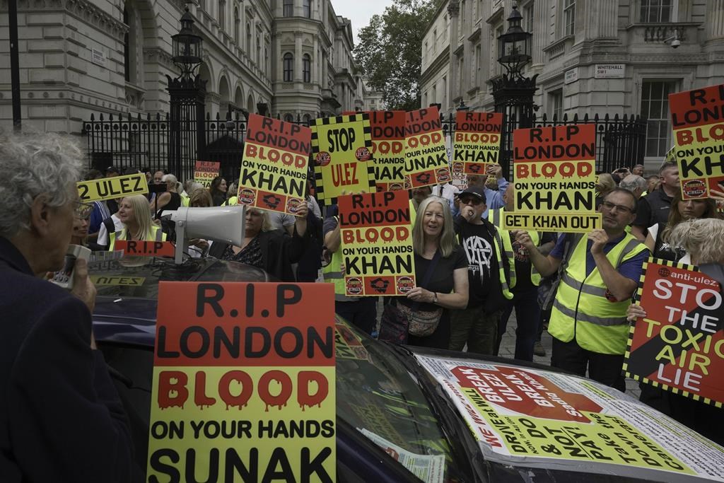 “I have no money to pay the fines, I have no money to replace my car,” said Austen, who joined a recent protest by several dozen ULEZ opponents beside a busy road in south London. Some passing drivers honked loudly when encouraged to “beep for freedom.”