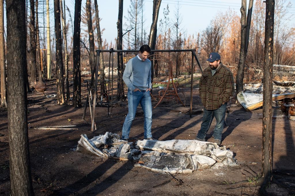 Trudeau toured Enterprise on Wednesday, walking among burned-out homes and vehicles as he spoke with officials.