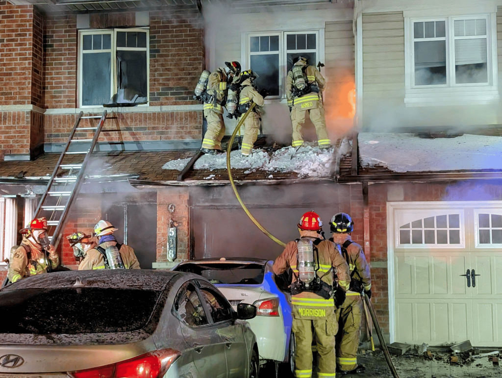 Firefighters arrived in four minutes and saw the blaze start spreading to other townhouses. After helping some of the people away from the backyard and into a waiting OC Transpo bus, crews grabbed a hose bringing it inside the building.