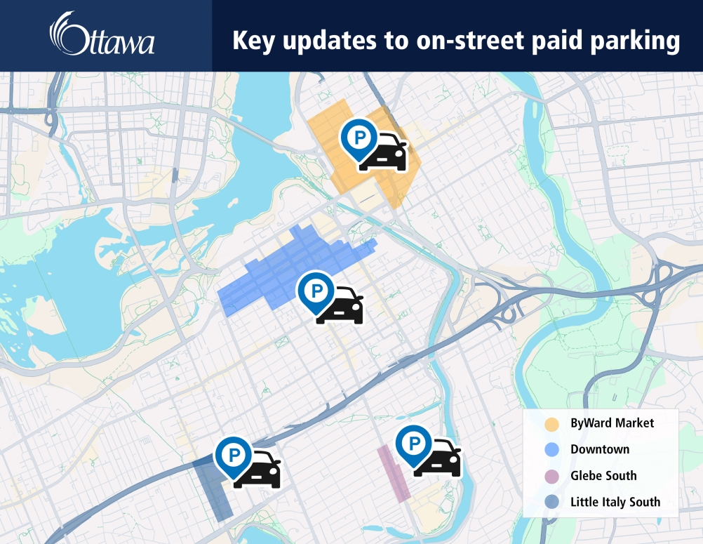 “Ottawa is home to many vibrant destination areas, with popular restaurants, pubs, and unique shops and boutiques,” a release from the city states. “When people visit these areas, they will often see the streets already lined with parked cars and no available spots in sight. Finding parking then becomes a frustrating and daunting task that can make people reconsider their visit.”