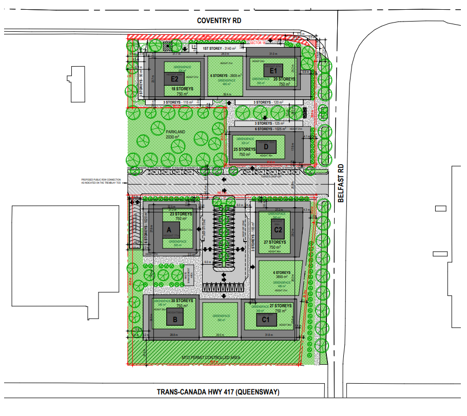 Staff at the committee level recommended that amendments be made to the Official Plan and Zoning By-Law to approve a development that will see six high-rise towers built near St. Laurent Shopping Centre on Belfast Road.
