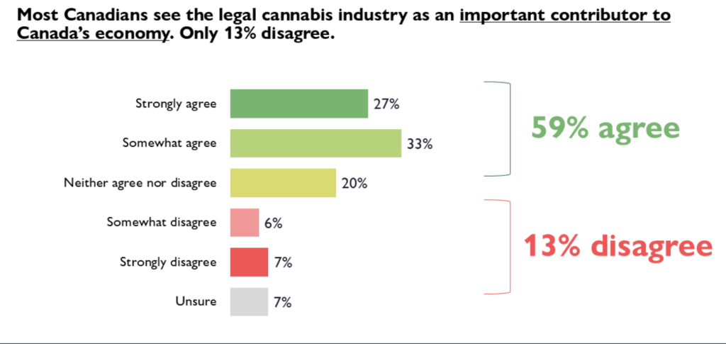 An Abacus Data poll produced on behalf of Organigram Global Inc. found that 59 per cent of Canadians believe the federal government should do more to promote jobs and innovation in the sector, citing the industry as an important part of the Canadian economy.