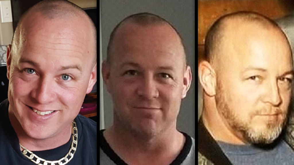 He is described as 5’10”, 232 pounds, and is bald with grey/blue eyes. If unshaven, he has dirty blond hair and grey facial hair. He also has multiple tattoos on his arms, legs and back.