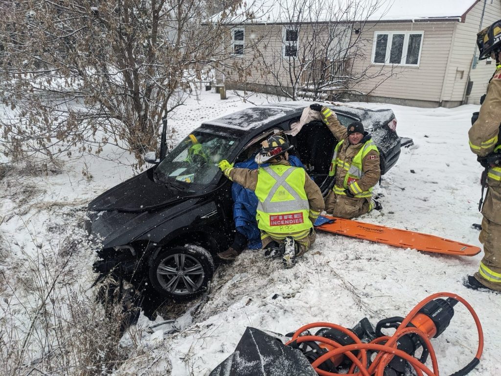 Crews were sent to the 7300 block of Snake Island Road. They found a vehicle that had left the roadway and was “lodged in the ditch.” The only occupant was trapped with multiple injuries, firefighters said.